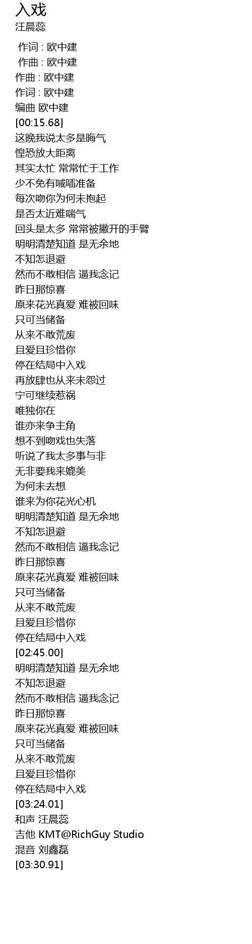 | [03:27.99] | ji ta KMT RichGuy Studio |