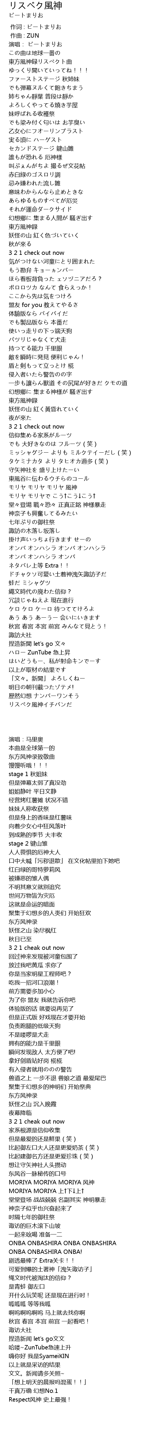 | [00:34.80] | 東方風神録リスぺクト曲 |