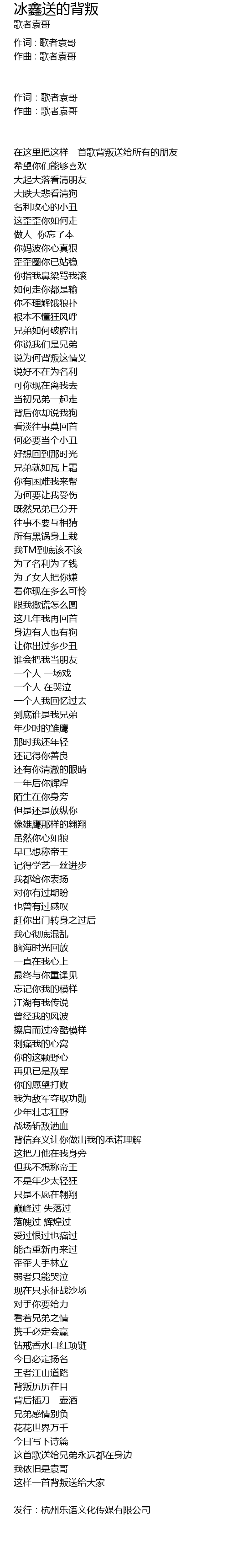 | 作词:歌者袁哥 | |