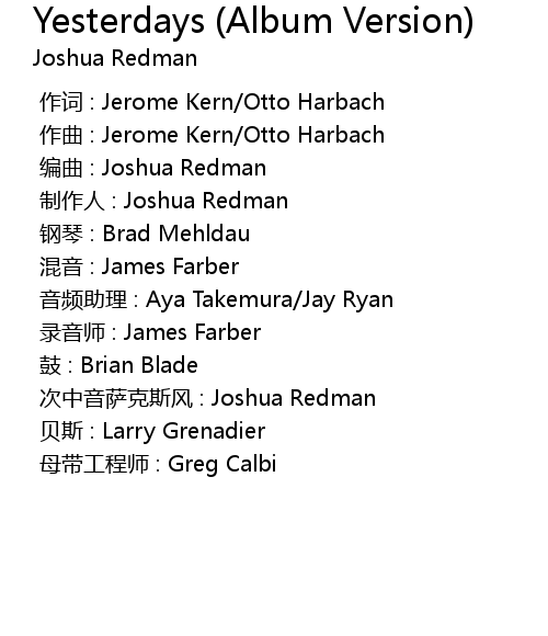 | [00:00.000] | 制作人 : Joshua Redman |