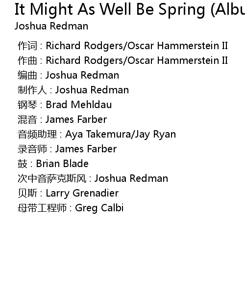 | [00:00.000] | biān qǔ : Joshua Redman |