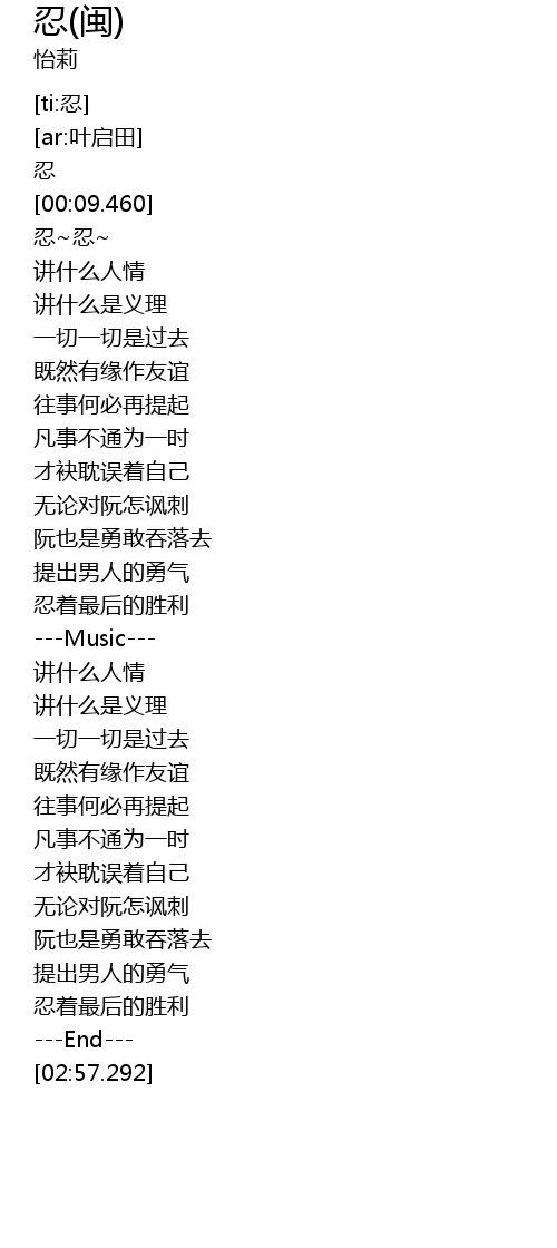 | [02:34.273] | 阮也是勇敢吞落去 |