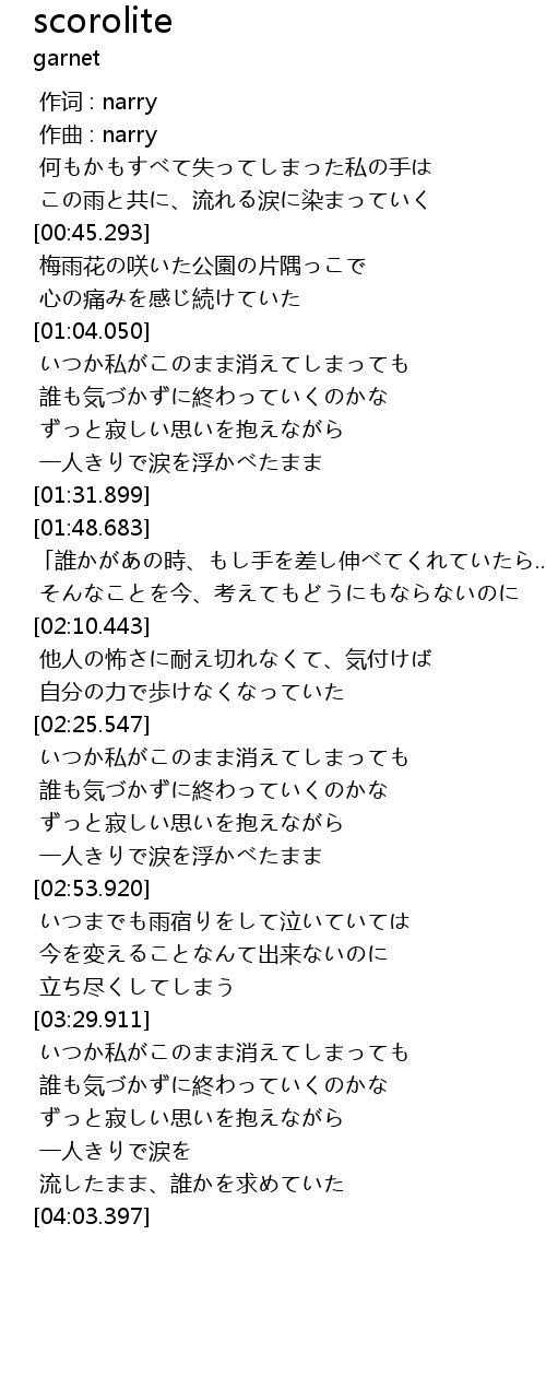 | [03:52.826] | 流したまま、誰かを求めていた |