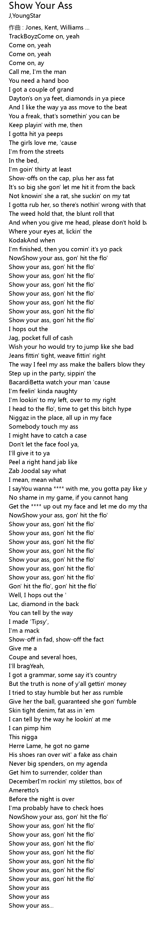 | NowShow your ass, gon' hit the flo' | |