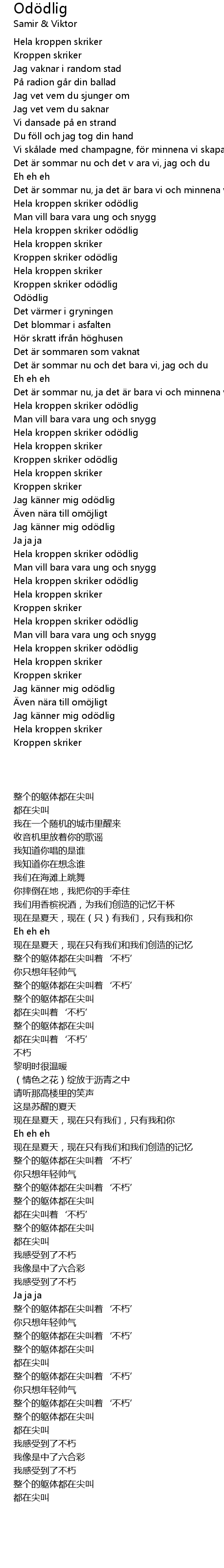 | [00:34.40] | Det är sommar nu och det v ara vi, jag och du |