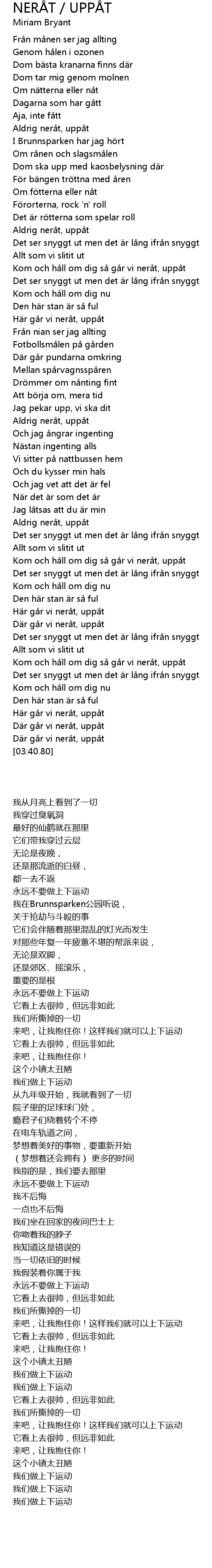 | [01:33.59] | Aldrig neråt, uppåt |