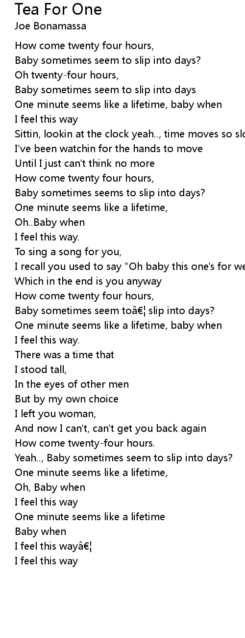 | Song | Tea For One |