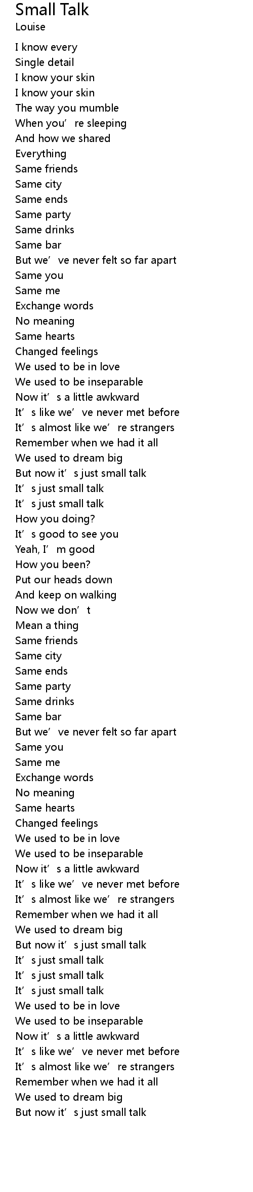 | [02:59.62] | But now it' s just small talk |