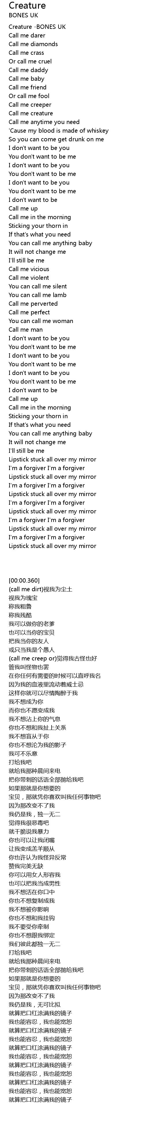 | [00:00.360] | Creature -BONES UK |