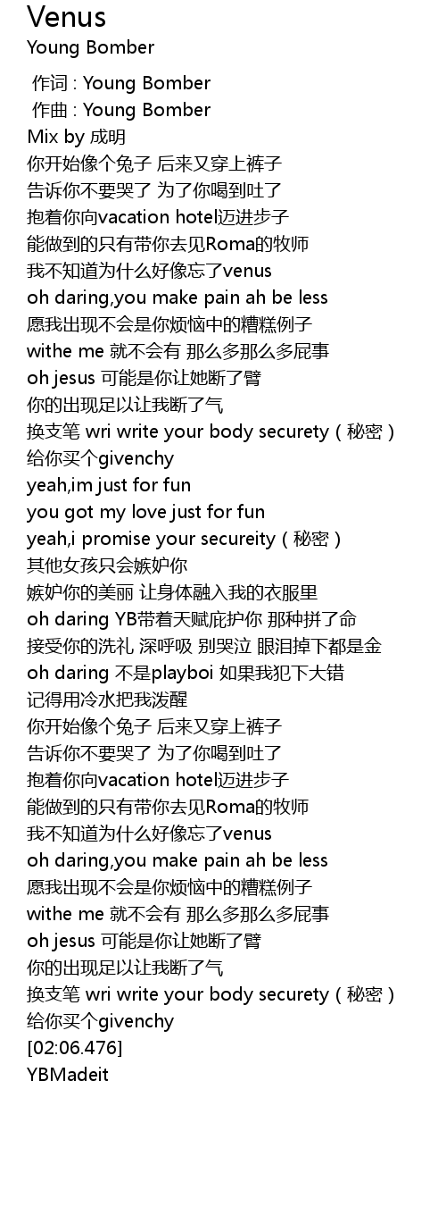 | [00:00.000] | 作词 : Young Bomber |