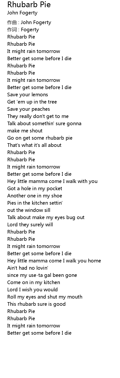 | Song | Rhubarb Pie |