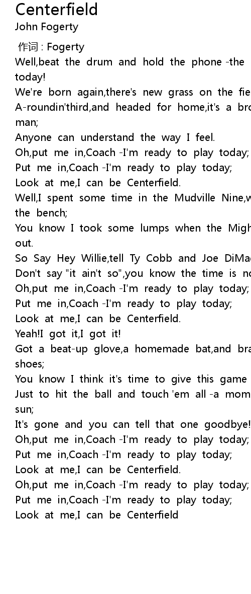 | [01:46.71] | Oh,put me in,Coach -I'm ready to play today; |