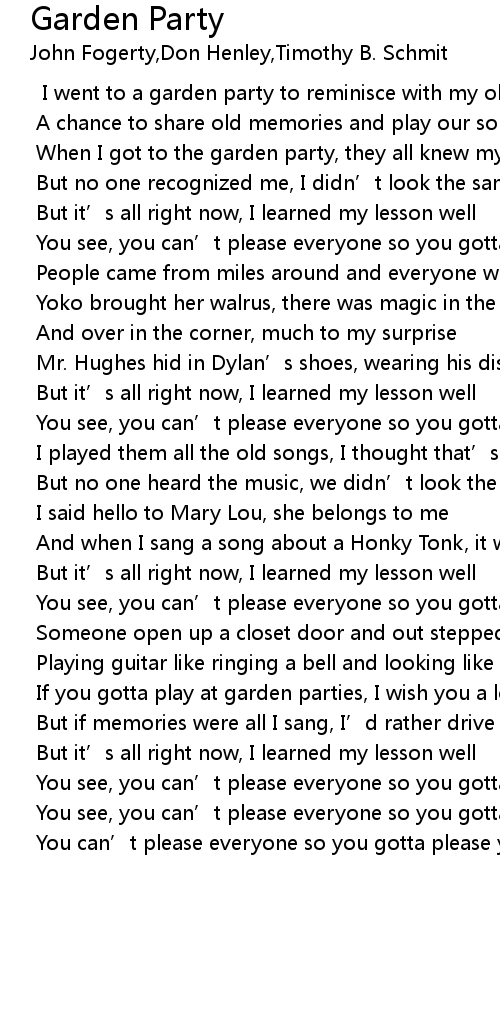 | If you gotta play at garden parties, I wish you a lot of luck | |