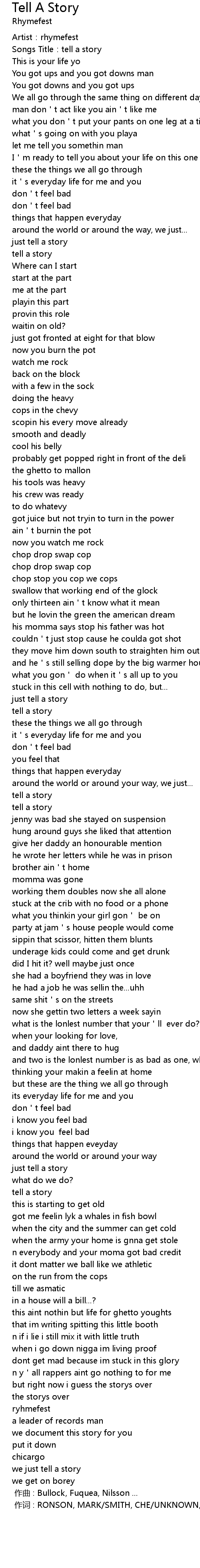 | Songs Title:tell a story | |