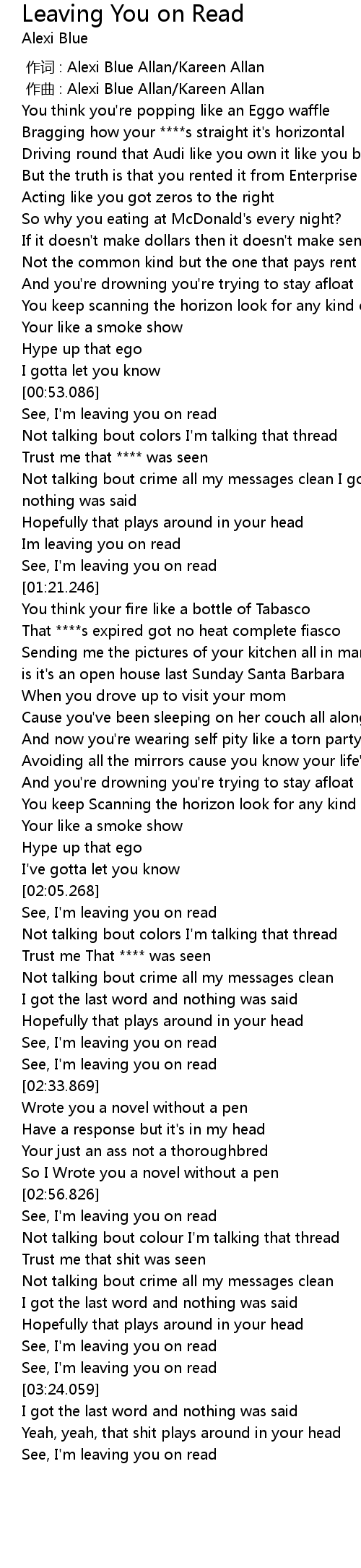 | [01:02.835] | Not talking bout crime all my messages clean I got the last word and nothing was said |