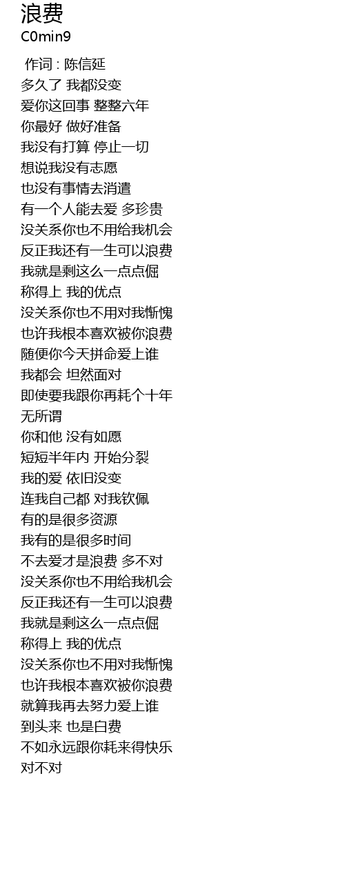 | [04:00.245] | 也许我根本喜欢被你浪费 |