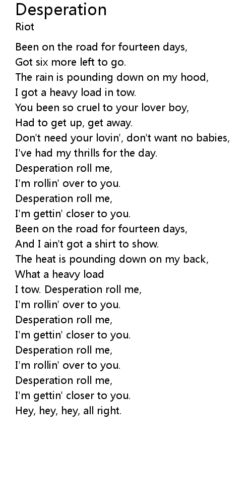 | Desperation roll me, | |