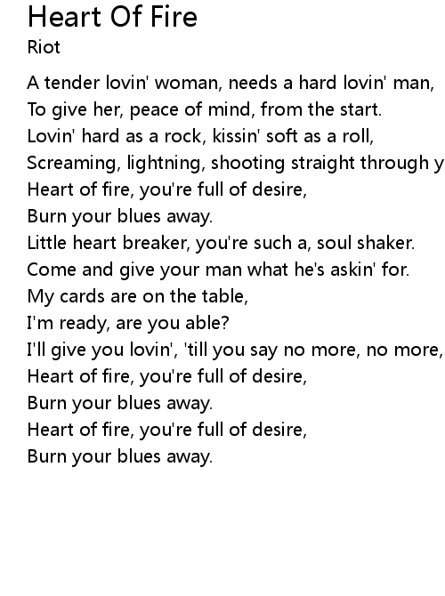 | Heart of fire, you're full of desire, | |