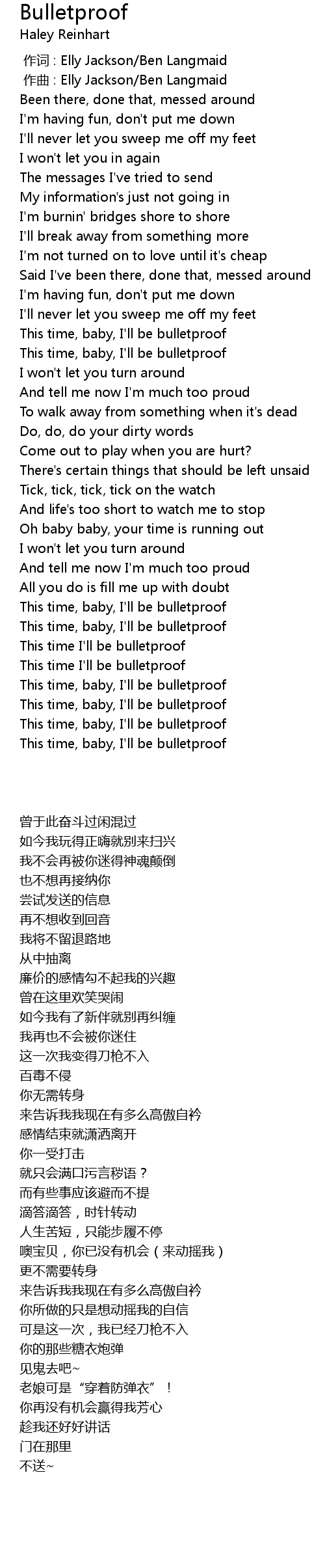 | [02:35.01] | This time, baby, I'll be bulletproof |