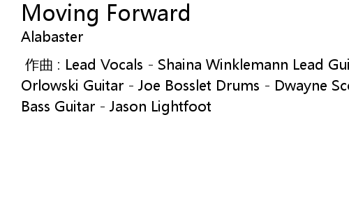 | [00:00.000] | 作曲 : Lead Vocals - Shaina Winklemann Lead Guitar & Lyrics - Kate Orlowski Guitar - Joe Bosslet Drums - Dwayne Scott Key & Vocals - Stacy Meyer Bass Guitar - Jason Lightfoot |