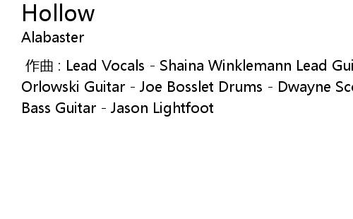 | [00:00.000] | 作曲 : Lead Vocals - Shaina Winklemann Lead Guitar & Lyrics - Kate Orlowski Guitar - Joe Bosslet Drums - Dwayne Scott Key & Vocals - Stacy Meyer Bass Guitar - Jason Lightfoot |