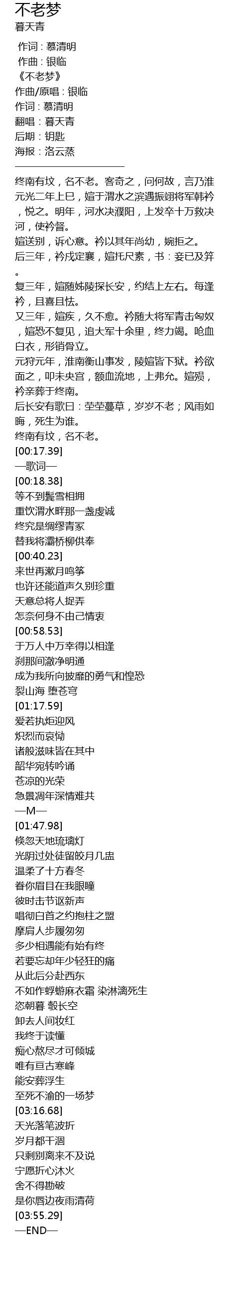 | [00:01.07] | 《不老梦》 |