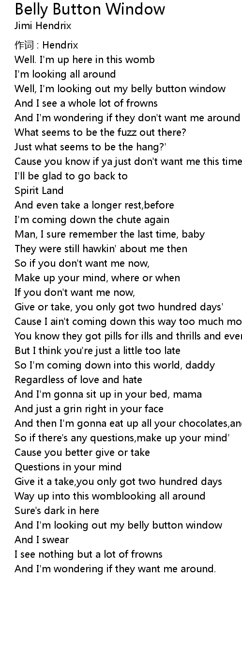 | Well, I' m looking out my belly button window | |