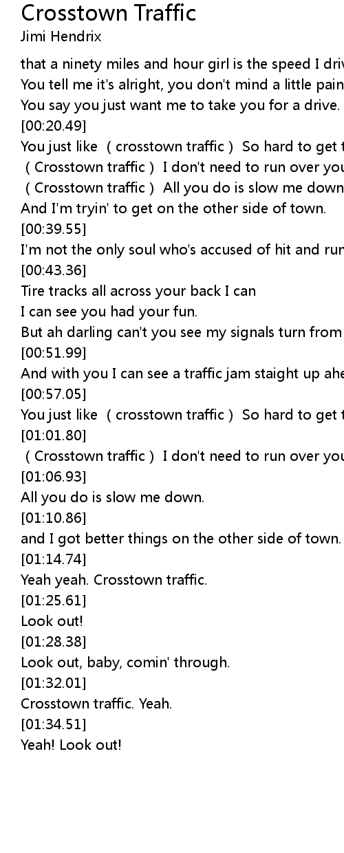 | [01:33.07] | Crosstown traffic. Yeah. |