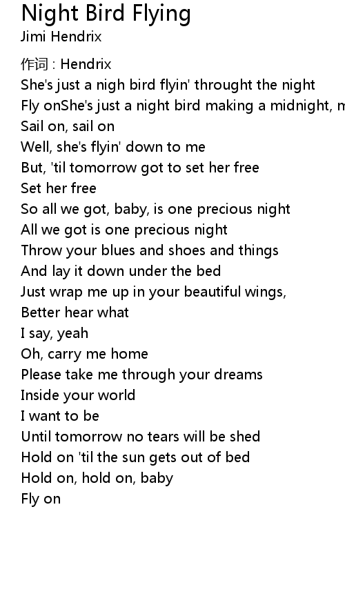 | Fly onShe's just a night bird making a midnight, midnight flight | |
