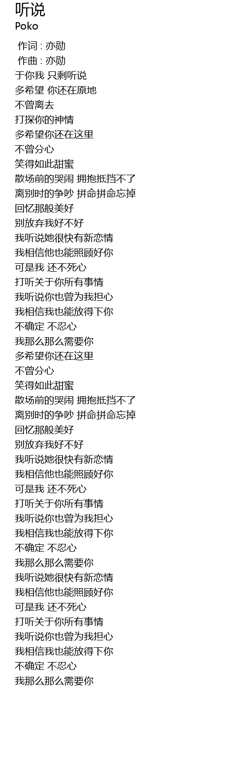 | [00:06.000] | yú nǐ wǒ zhǐ shèng tīng shuō |