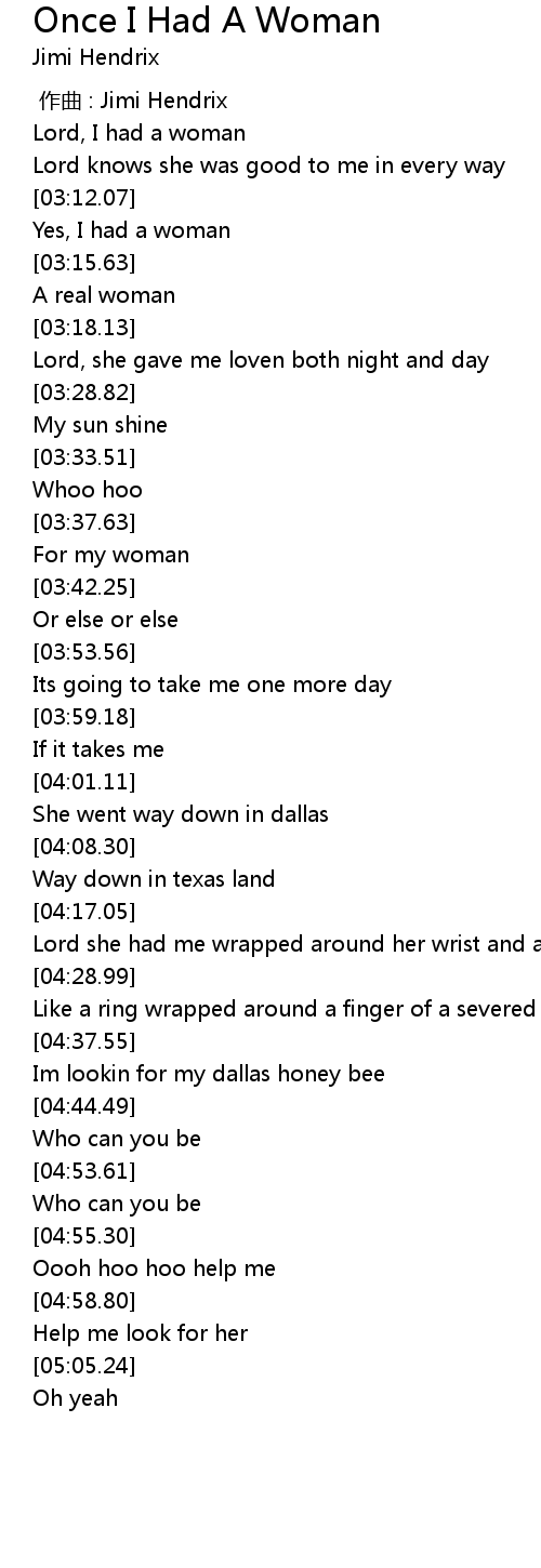 | [03:00.30] | Lord, I had a woman |
