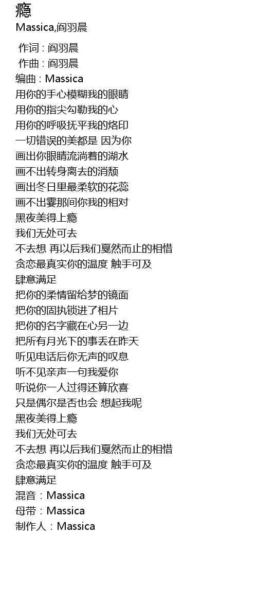 | [00:00.000] | 作词 : 阎羽晨 |