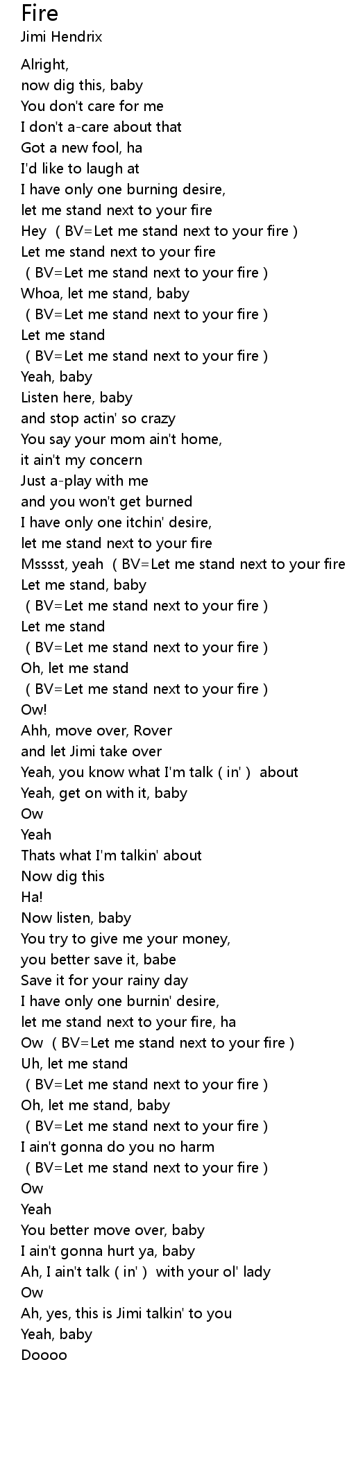 | [00:26.02] | Hey (BV=Let me stand next to your fire) |