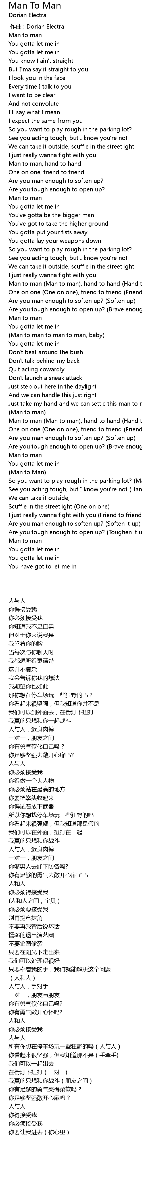 | [02:44.89] | So you want to play rough in the parking lot? (Man to man) |