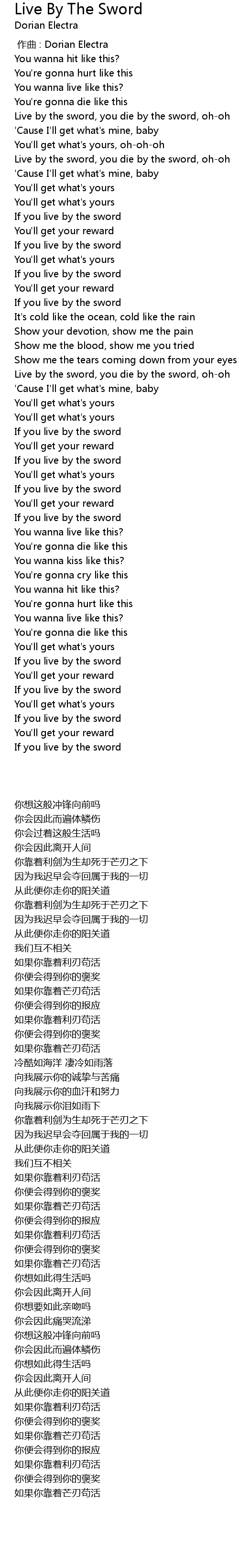 | [01:15.455] | Live by the sword, you die by the sword, ohoh |