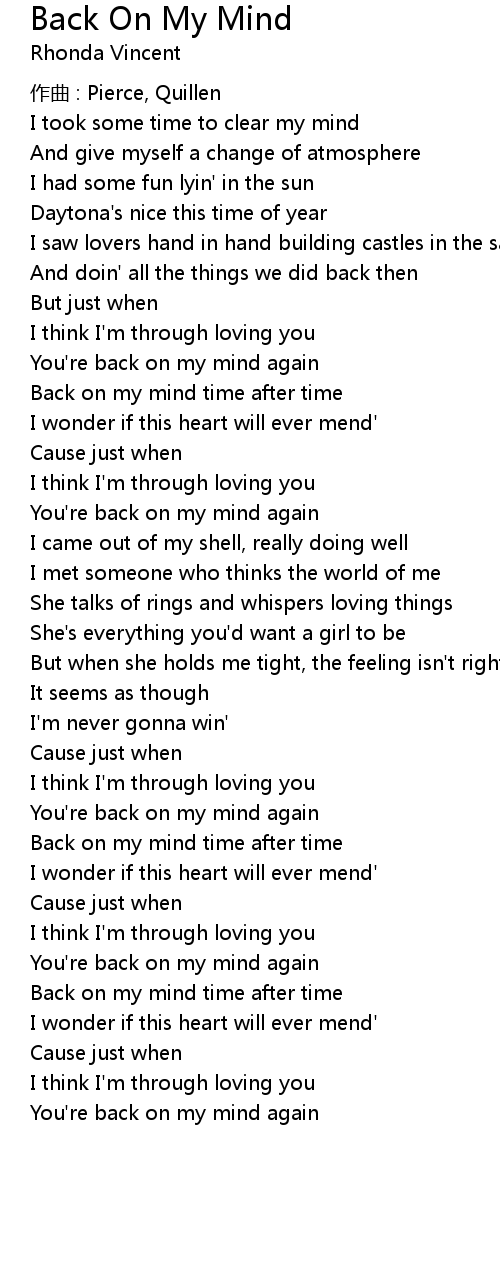 | Back on my mind time after time | |