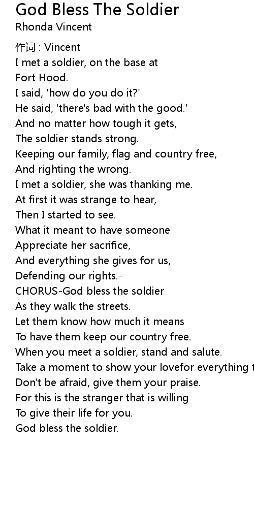 | CHORUS-God bless the soldier | |