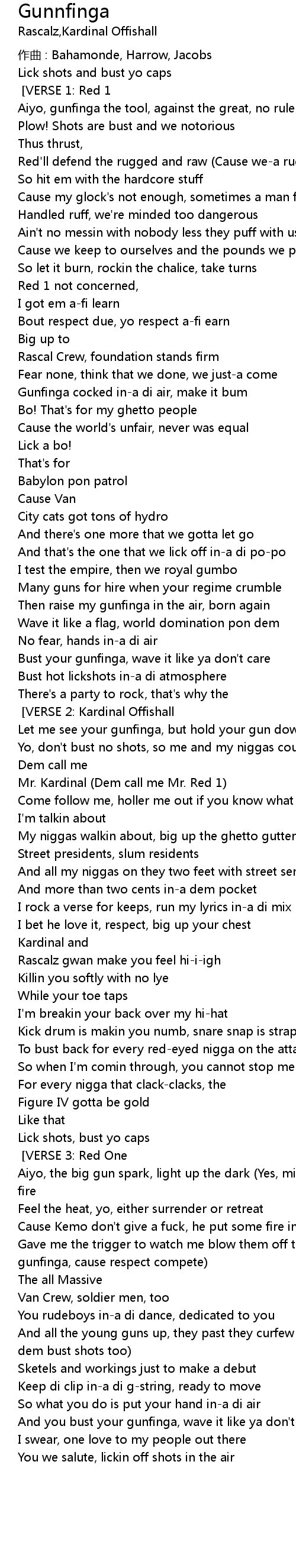 | Put it up, where your gunfinga's at? [x2] [VERSE 3: Red One] | |