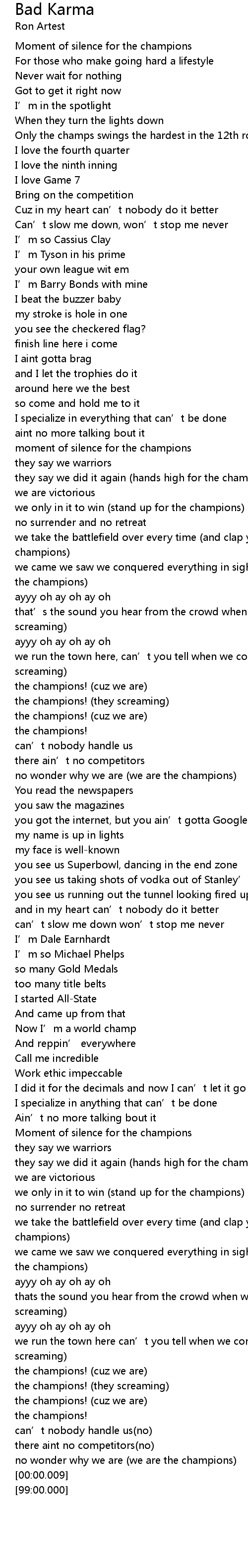 | [03:08.87] | we came we saw we conquered everything in sight (moment of silence for the champions) |