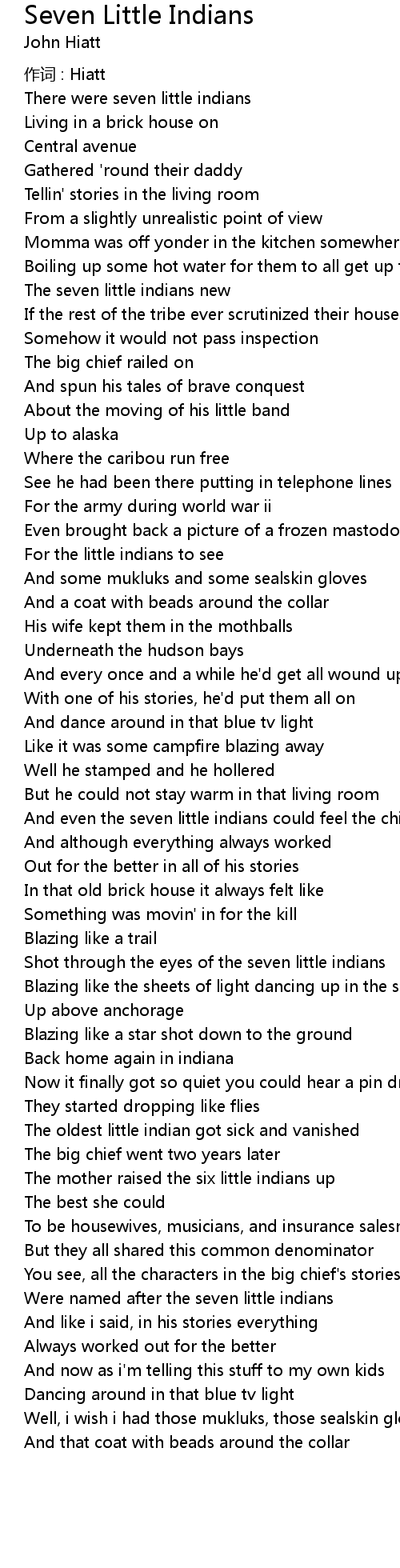 | Song | Seven Little Indians |