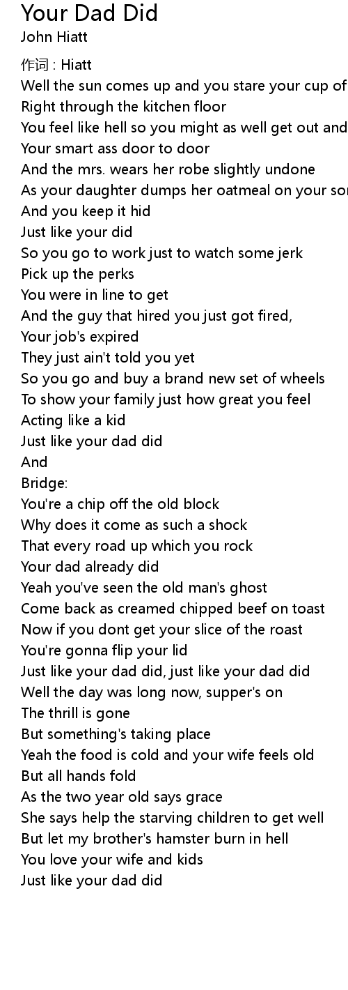 | Well the sun comes up and you stare your cup of coffee, yup | |