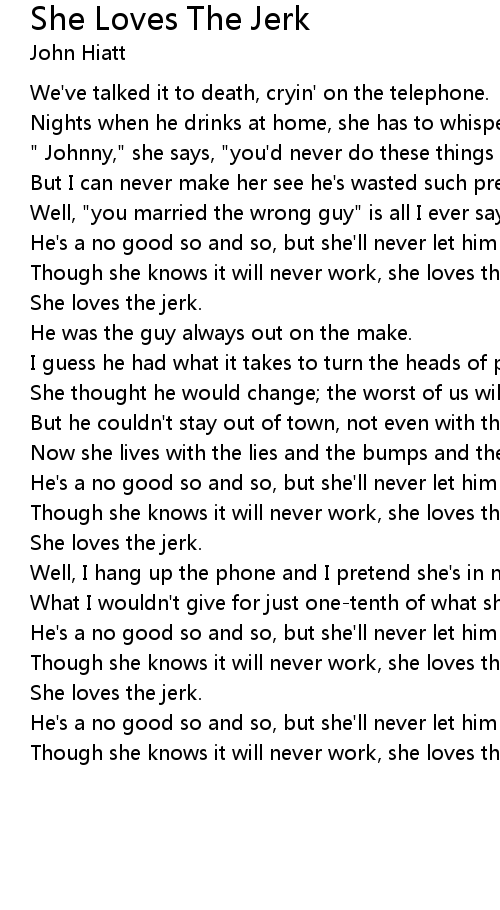 Though she knows it will never work, she loves the jerk. |