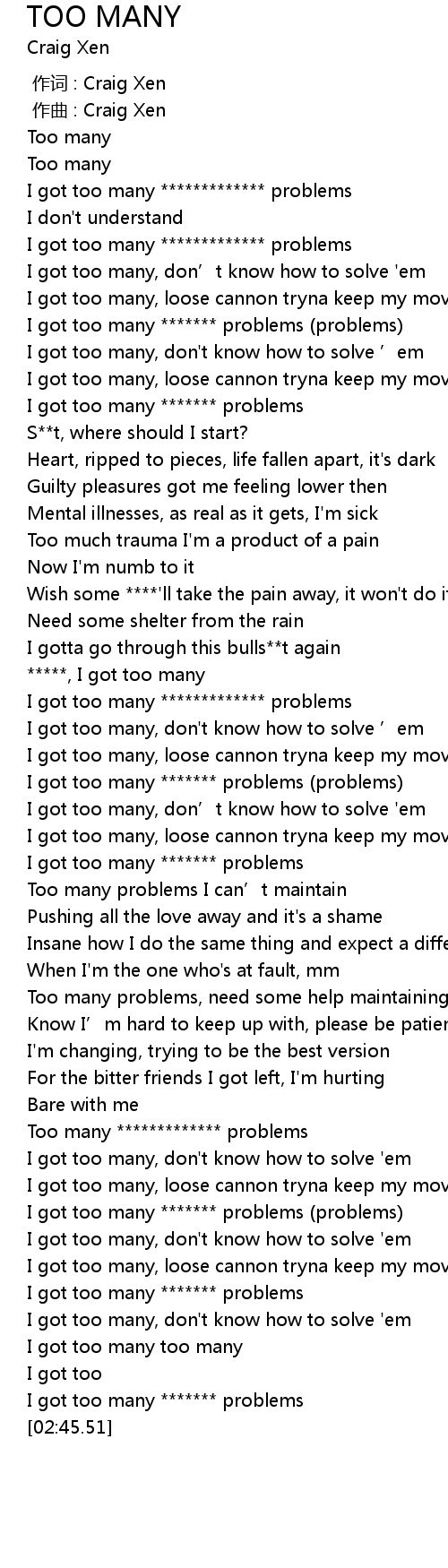 | [02:20.34] | I got too many, don't know how to solve 'em |