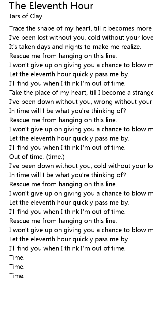 Let the eleventh hour quickly pass me by. |