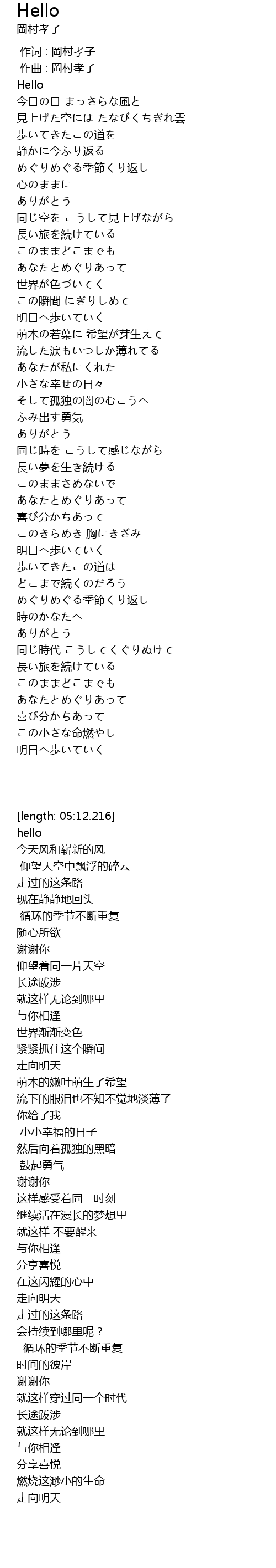 | [00:01.000] | 作曲 : 岡村孝子 |