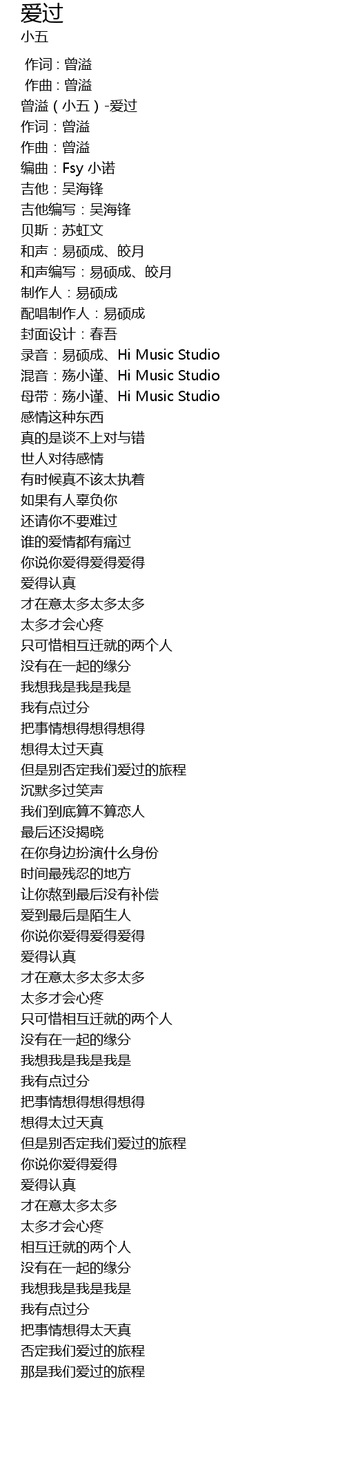 | [00:00.99] | 曾溢(小五)-爱过 |
