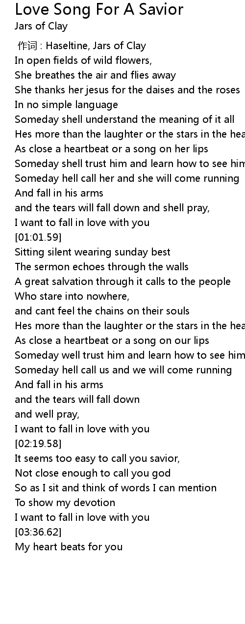 | [00:00.00] | 作词 : Haseltine, Jars of Clay |
