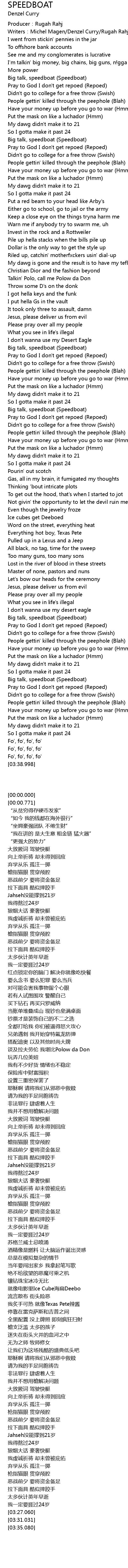 | [01:35.360] | Big talk, speedboat (Speedboat) |