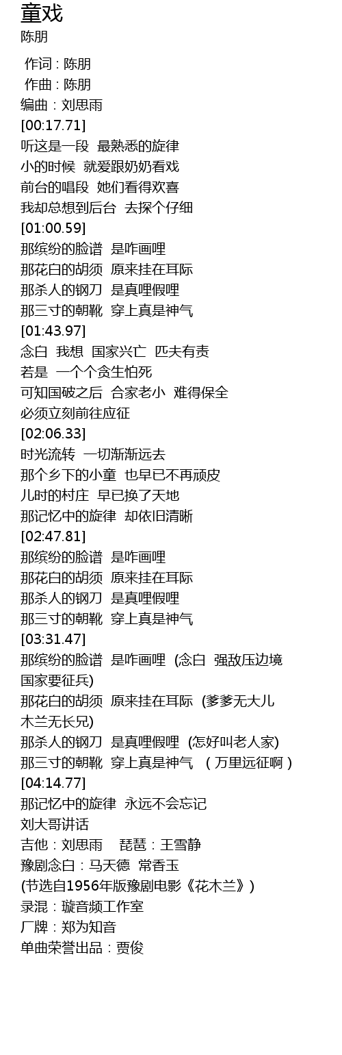 | [04:32.29] | (节选自1956年版豫剧电影《花木兰》) |