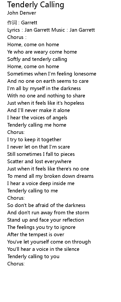 | Tenderly calling me home | |